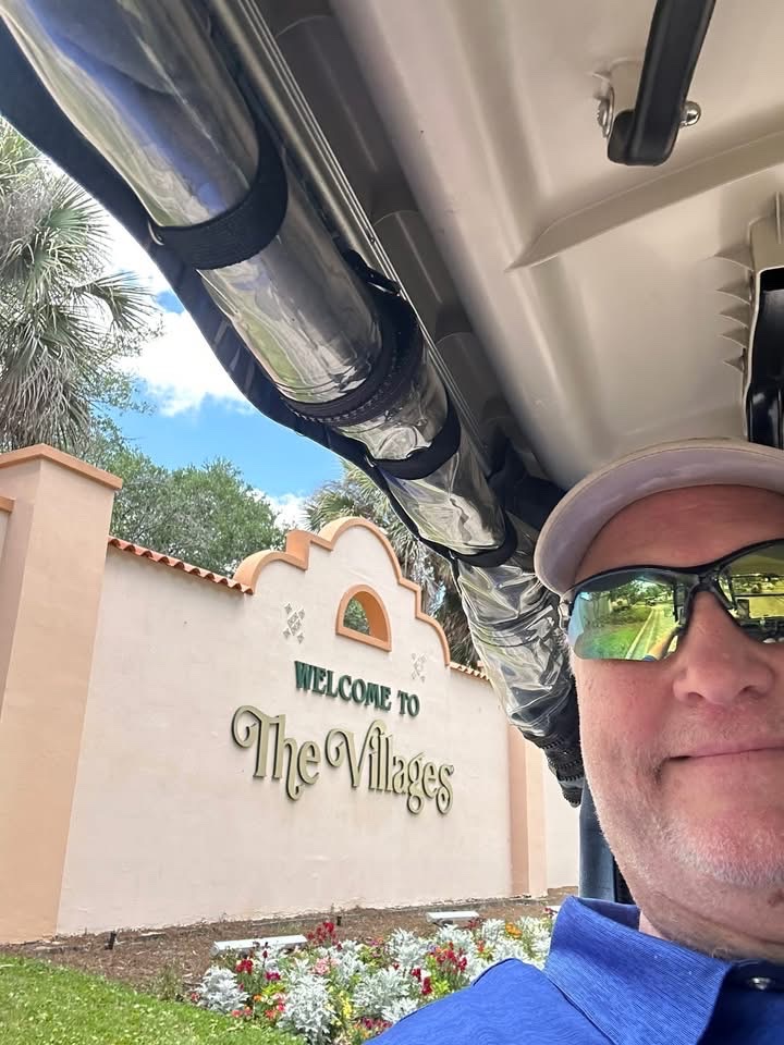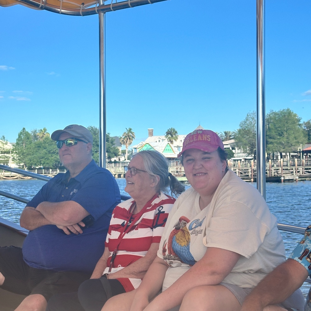 in The Villages. We cruised in golf carts,found out there are certain times you get Visitor IDs at Savannah Center, went to Sumter Landing square to listen to some music and do a boat ride after eating at Johnny Rockets. Then we came back to play wahoo with Grandma. Such a great day!